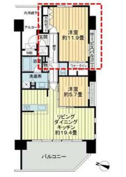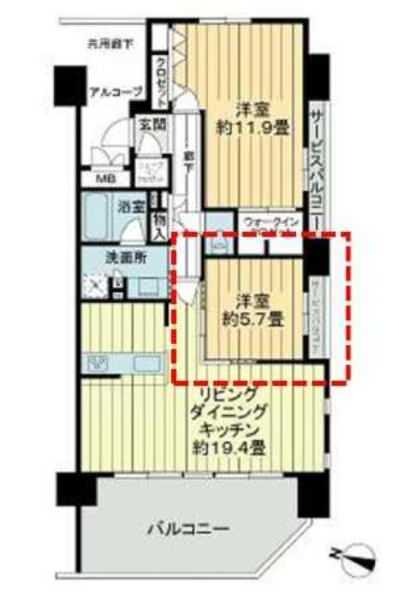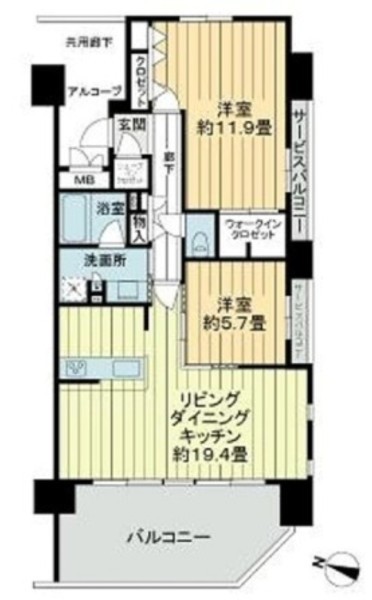 2LDK(洋 11.9・5.7 / LDK 19.4)
